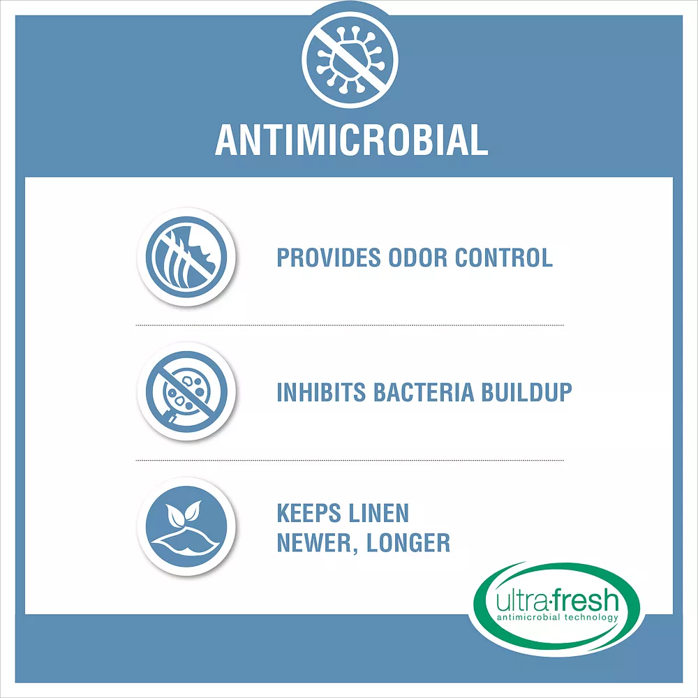 - Ultra fresh anti-microbial treatment for health and wellness provides odor control, inhibiting bacteria buildup, and extends product life by keeping linen fresher for longer.