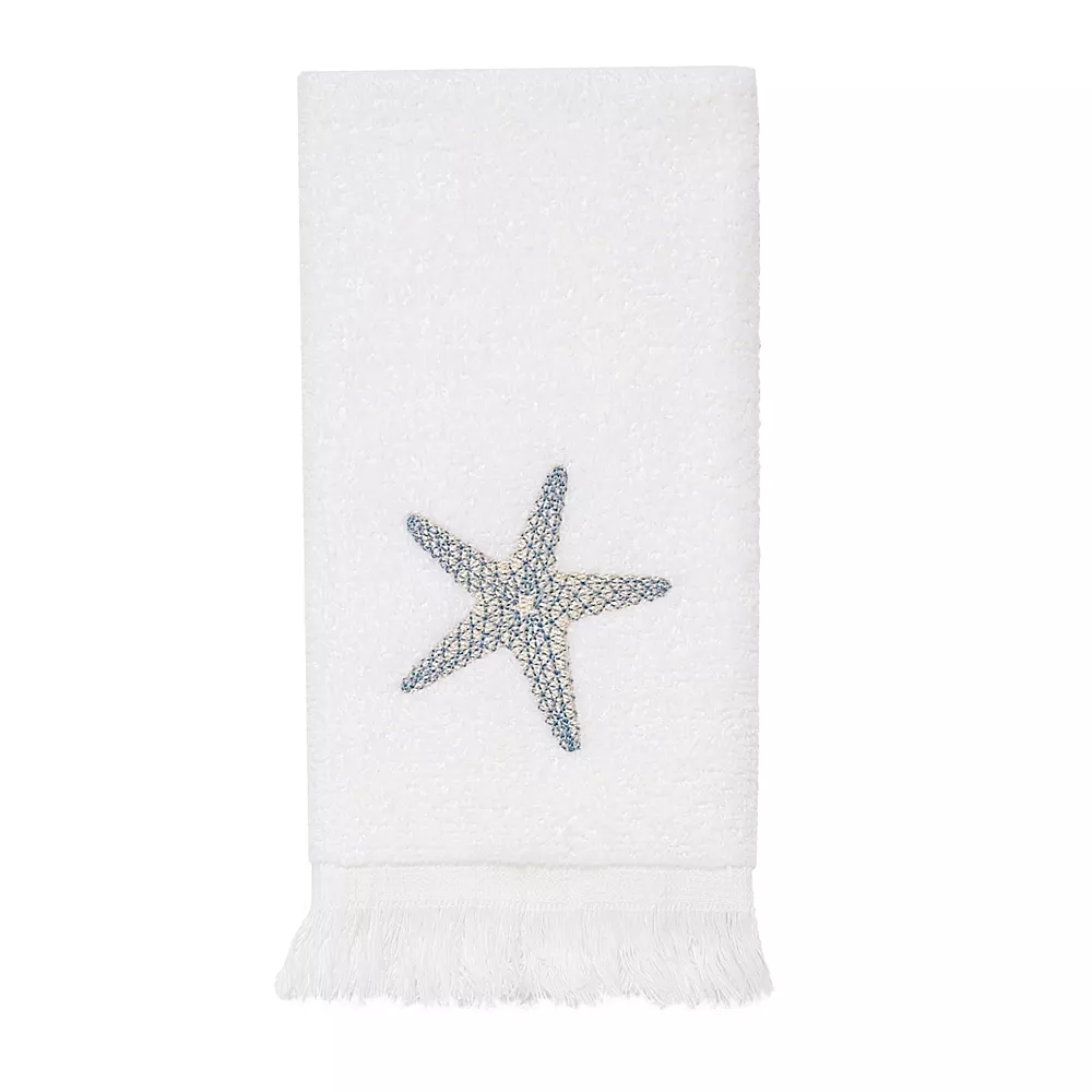This Avanti fingertip towel adds a coastal feel to your bathroom decor. In white.