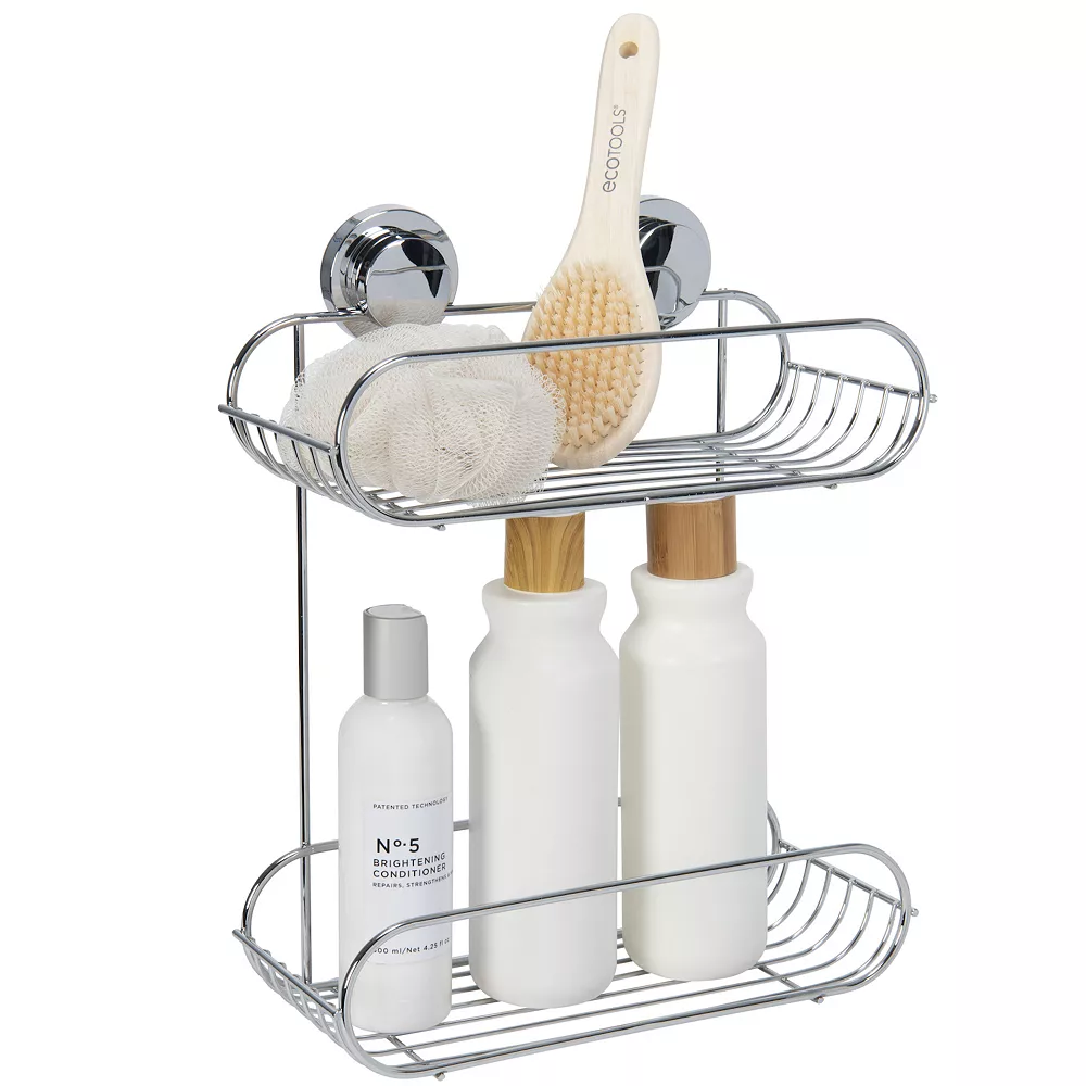 Keep your bathroom organized and tidy with this Bath Bliss 2 Tier Suction Cup Bathroom Baskets.