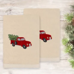 Linum Home Textiles Christmas Truck Embroidered Luxury Turkish Cotton Set Of 2 Hand Towels