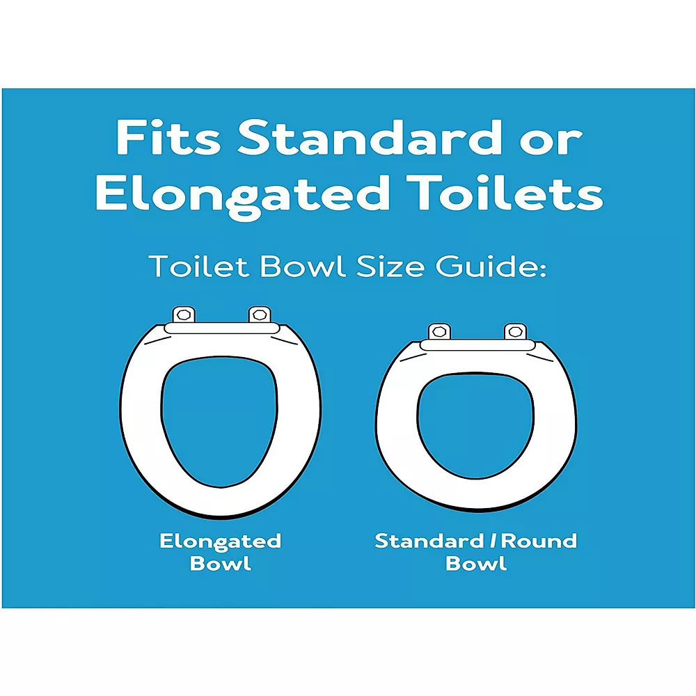 - FITS ROUND AND ELONGATED TOILETS. The lifted toilet seat will work on standard round and elongated toilets. The toilet riser dimensions (H x W x D) are 5″ x 15″ x 16″. The seat requires n locking and is not hinged