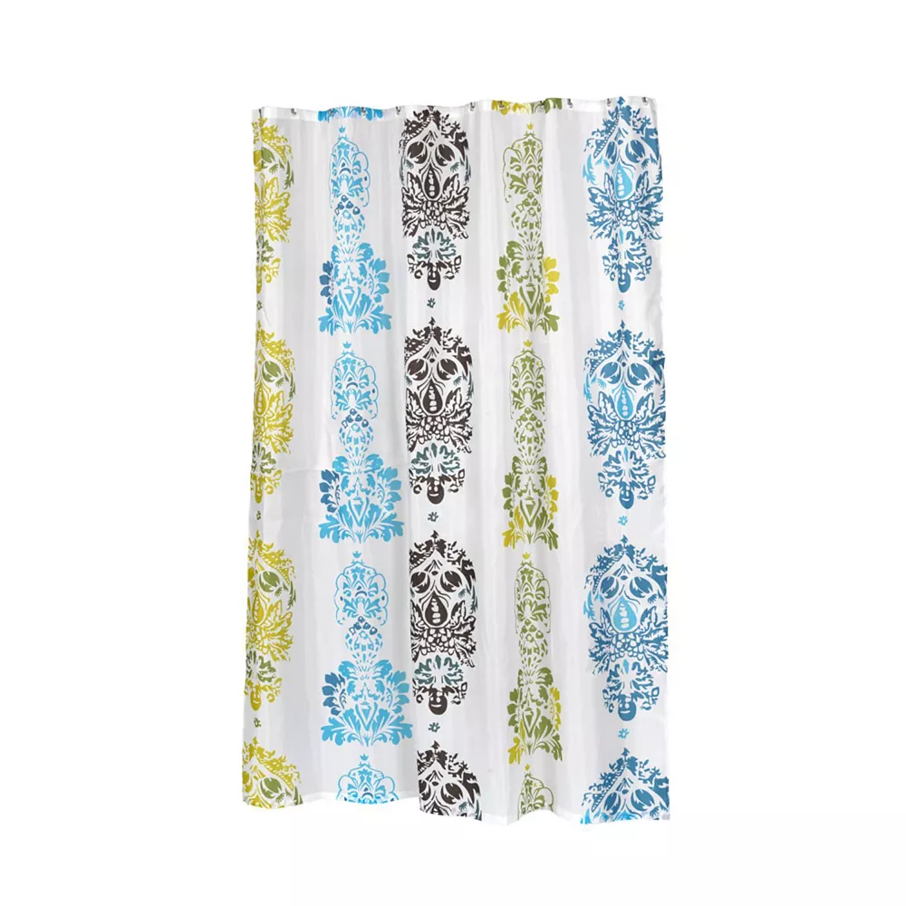 Our Extra Long Olivia Shower Curtain gives a traditional pattern a contemporary appeal. Specially designed to fit where a standard size curtain is too short (curtain measures 70 wide x 84 long), Olivia is 100% polyester, machine washable, and water resistant. For those with varying size needs, Olivia comes in standard. Also available separately is the coordinating Olivia window curtain. Care Instructions: Machine wash in warm water, tumble dry, low, light iron as needed.