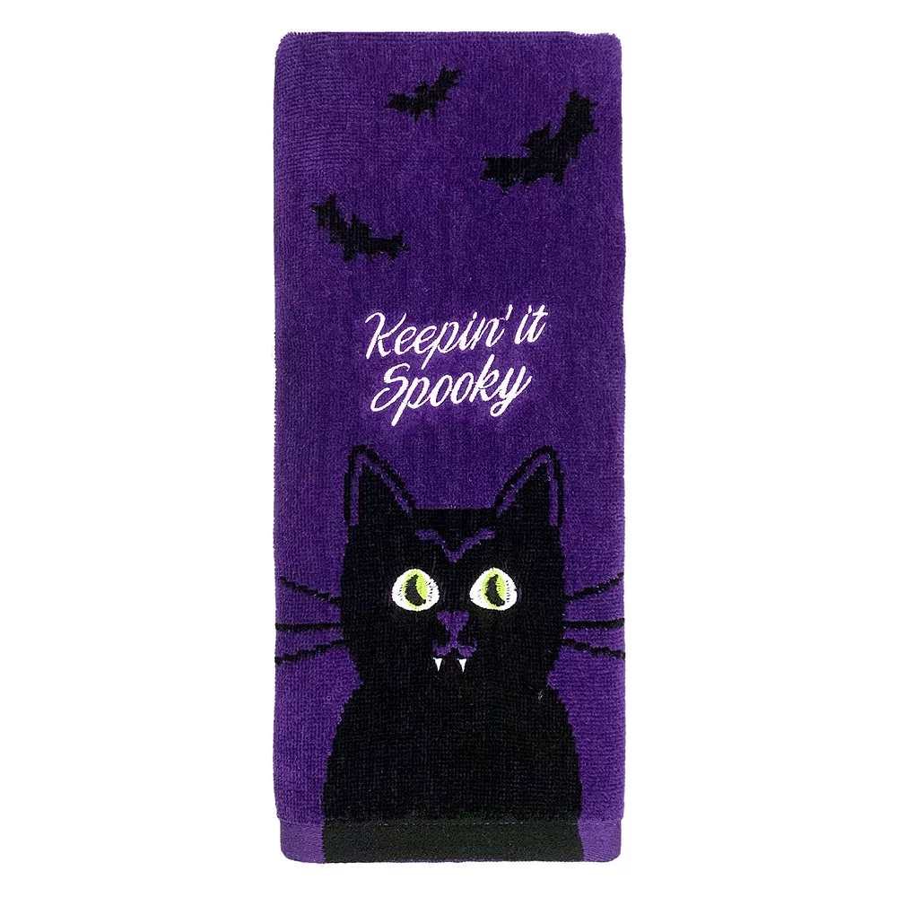 Add a spooky addition to your Halloween bathroom decor with this haunted Celebrate Together Halloween Cat Hand Towel.