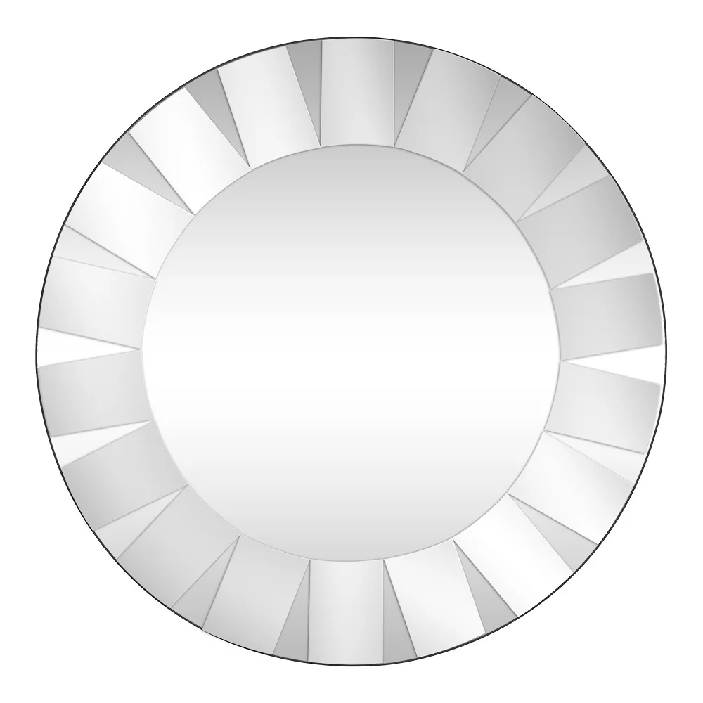 The Glass Petal Mirror has everything you desire in contemporary design and so much more. At 30 inches in diameter, the Glass Petal Mirror is sure to capture the light from every angle. Whether you hang this mirror in your entryway, above the fireplace or in the master bathroom, the Glass Petal Mirror will sparkle like a prized jewel and turn heads with every passing. Angled frame further brightens any area. Mirrored frame. Makes a great accent anywhere in the home. Center mirror with alluring reflective frame. 30 round. Surface Shape: Flat. Purposeful Distressing Type: No Distressing. Mirror Height – Top to Bottom: 30. Mirror Width – Side to Side: 30. Largest Dimension: 30. Trend: Casual. Size: Large (3O-in to under 5O-in H). Edge Type: Beveled. Mounting Bracket Included: Yes. Mounting Hardware Included: No. Tilting: No. Shelf Included: No. Wood Species: Pine.