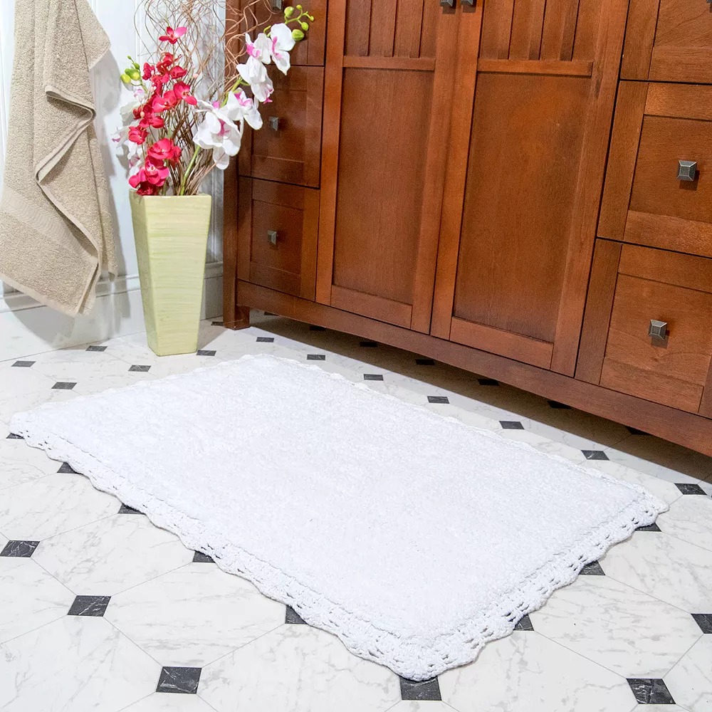 Lend a distinctive look to your bathroom with this Chesapeake Crochet reversible rug set.