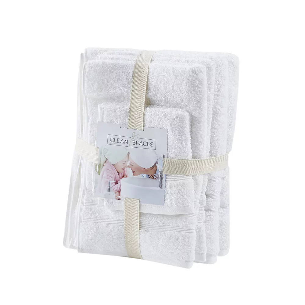 Easily add the perfect look to your bathroom with this Clean Spaces Nurture Sustainable Antimicrobial 6-piece bath towel set.