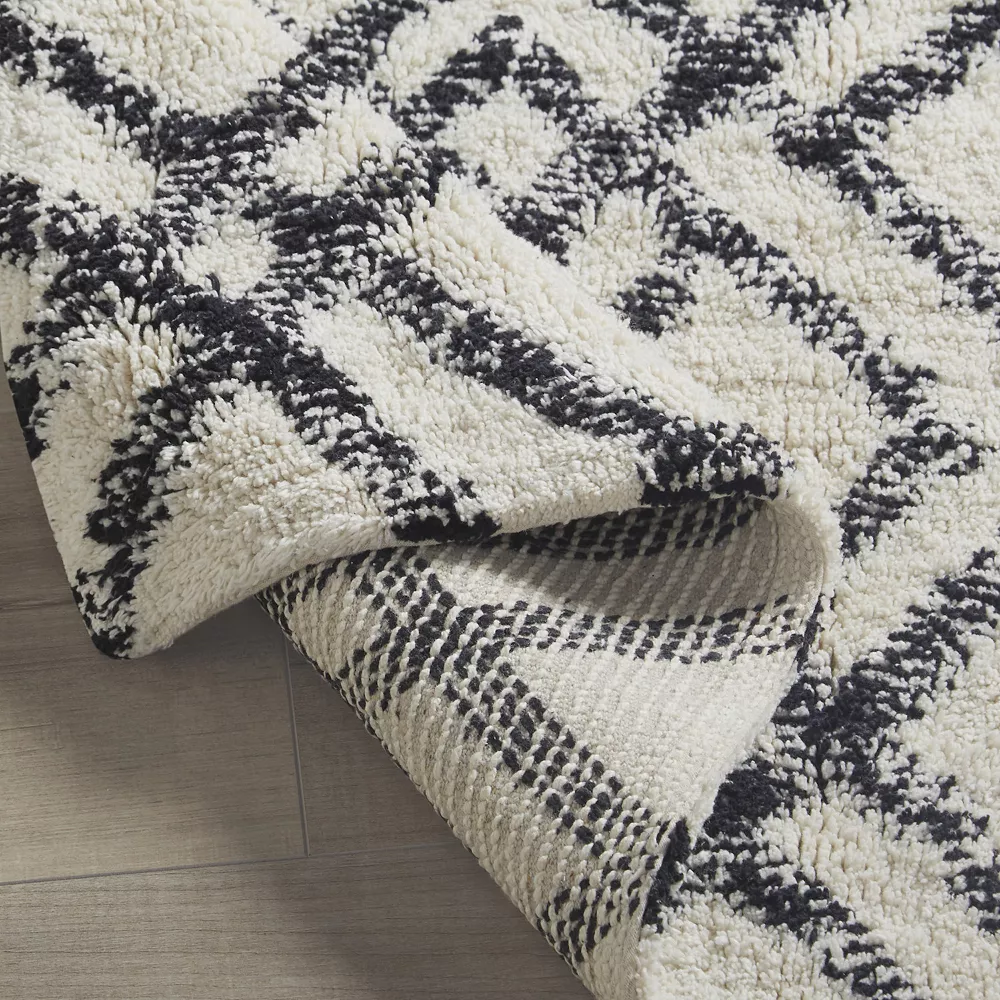 Perfect the look and feel of your bathroom ambiance with this stylish INK+IVY Ansel Geo Diamond Yarn Dyed Cotton Tufted Bath Rug.