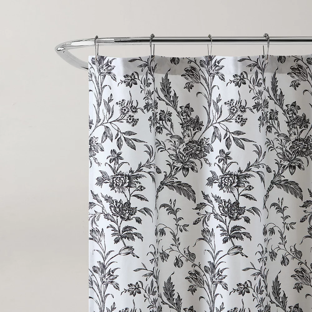 Give your bathroom an updated look with this Laura Ashley Amberly Black Shower Curtain.