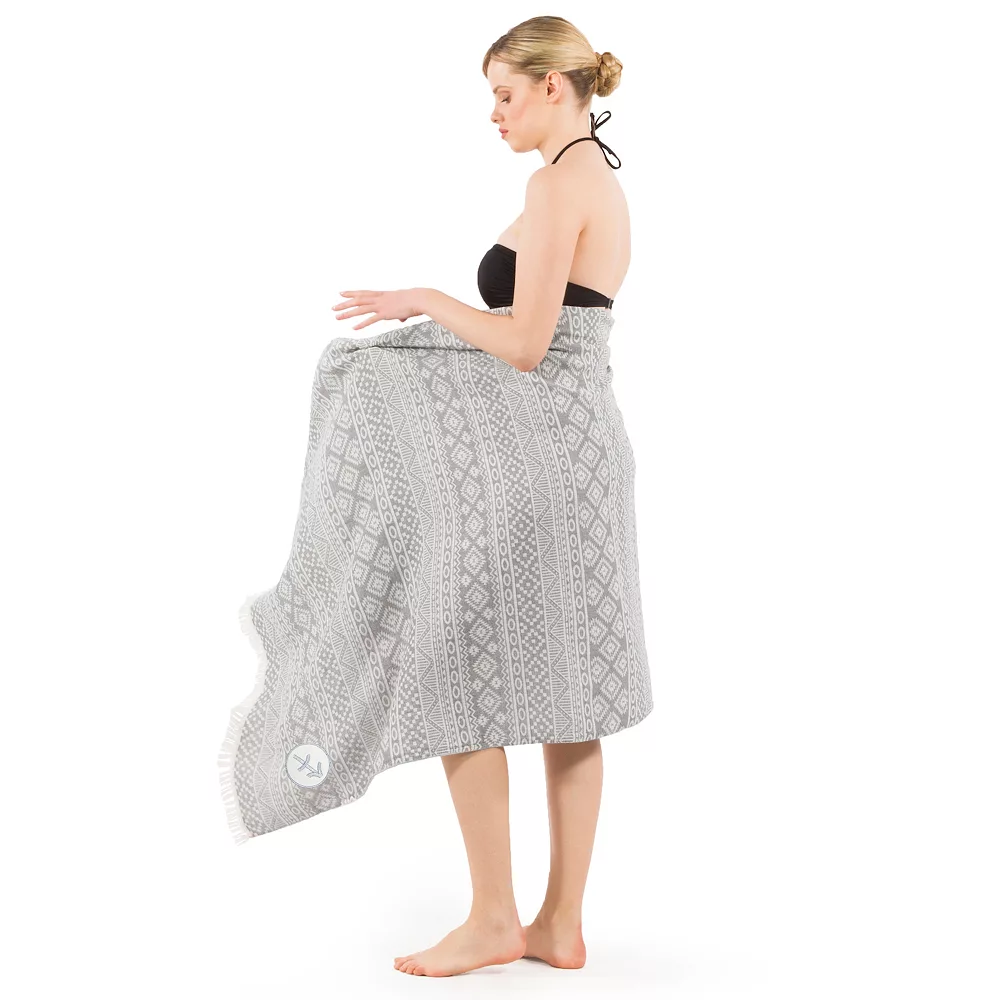 - Perfect for everyday use or travel, this eco-friendly design is light weight, fast drying and edged with hand tied fringes