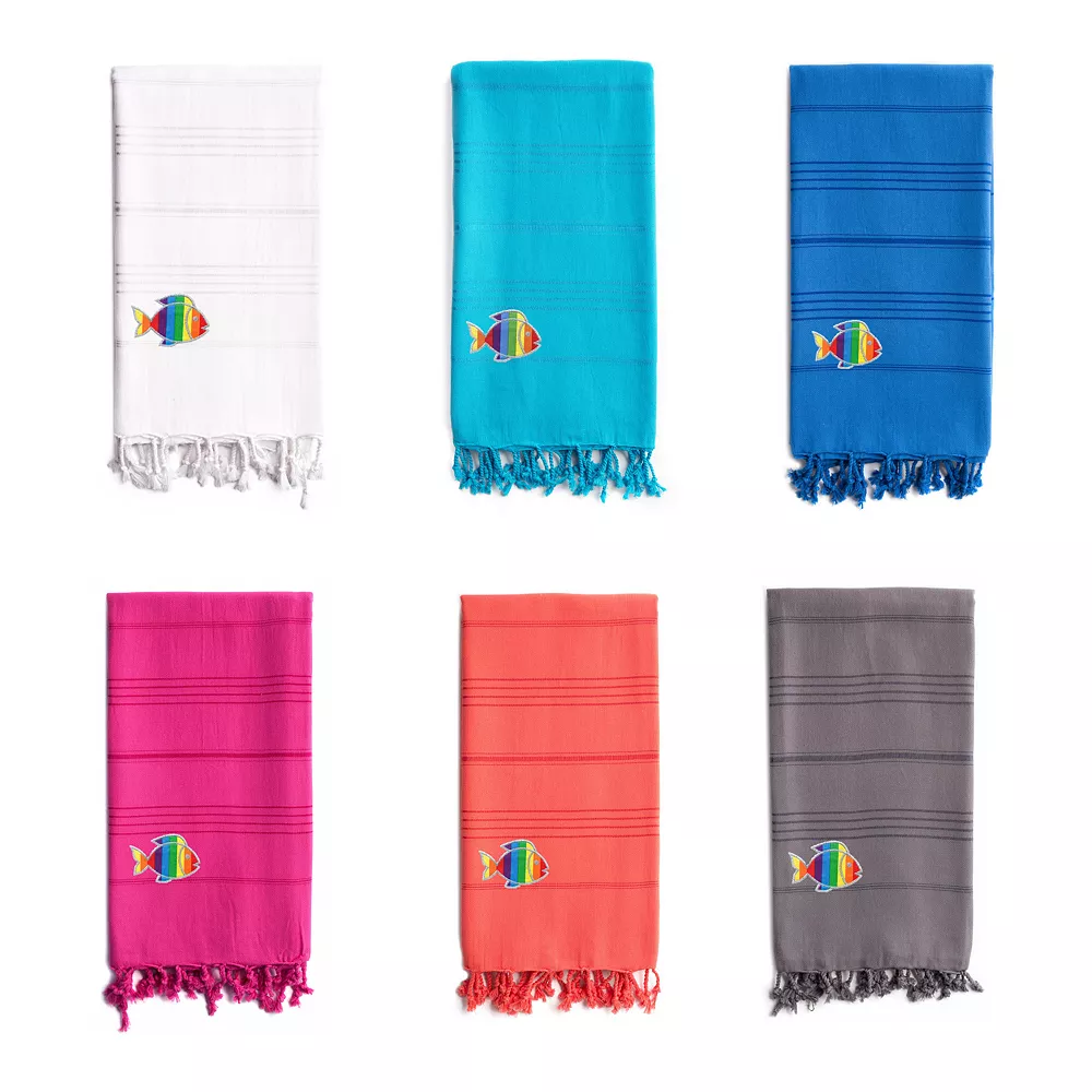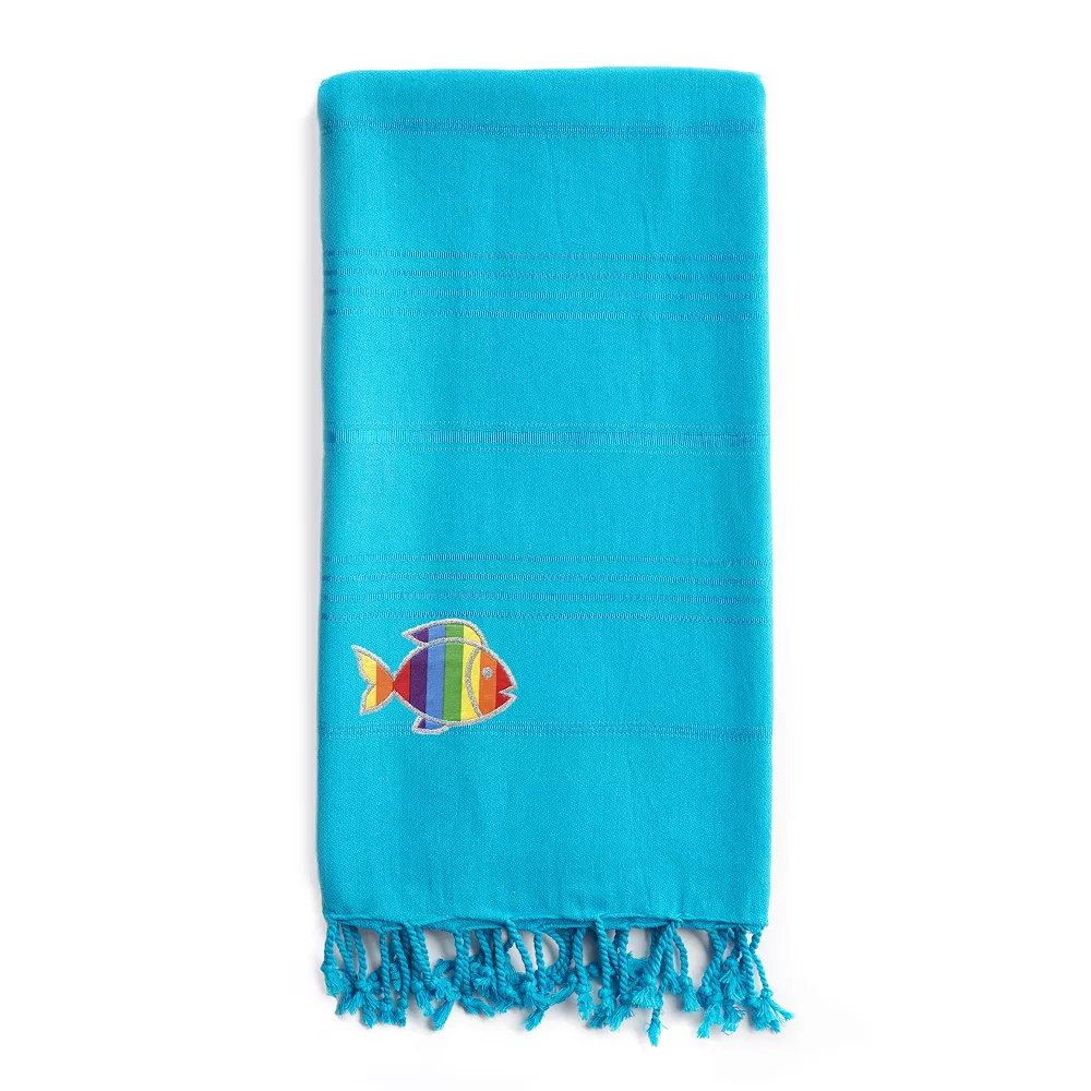 - Linum Home Textiles 100% Turkish Cotton Summer Fun Sparkling Rainbow Fish Pestemal Beach Towel