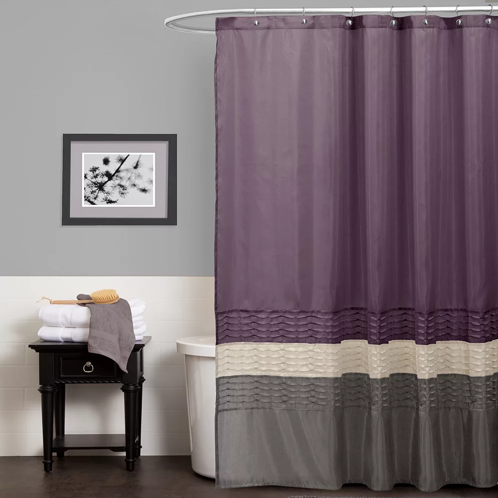 This Lush Decor Mia shower curtain is simple, yet stylish. With classic pleating and a silky finish, this shower curtain complements your bathroom accessories for timeless appeal.