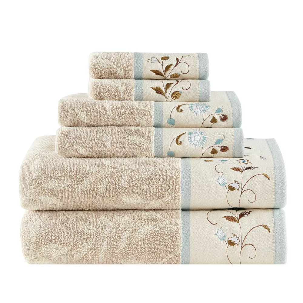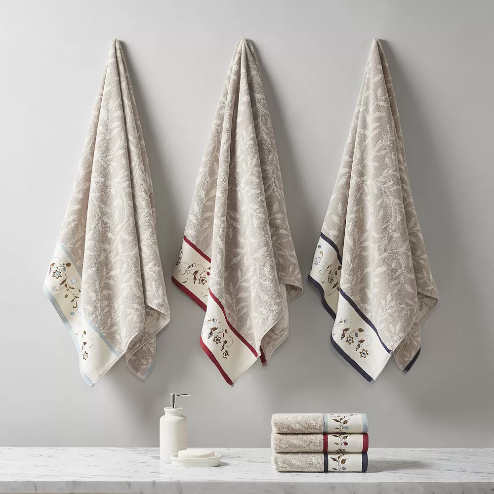 Breathe elegance into your guest bathroom with this beautiful Madison Park Belle embroidered bath towel set.