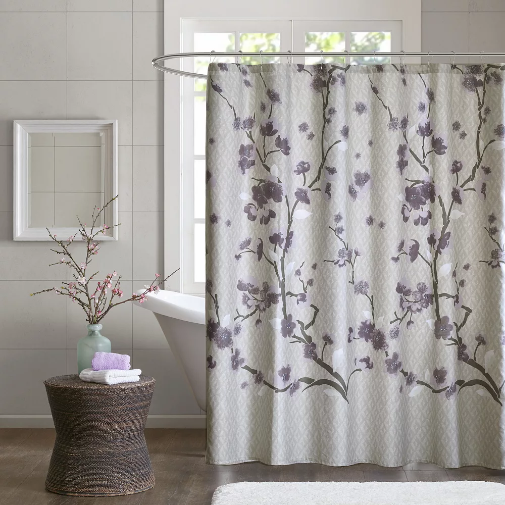 Bring modern elegance into your bathroom with this Madison Park Isabella cotton shower curtain.