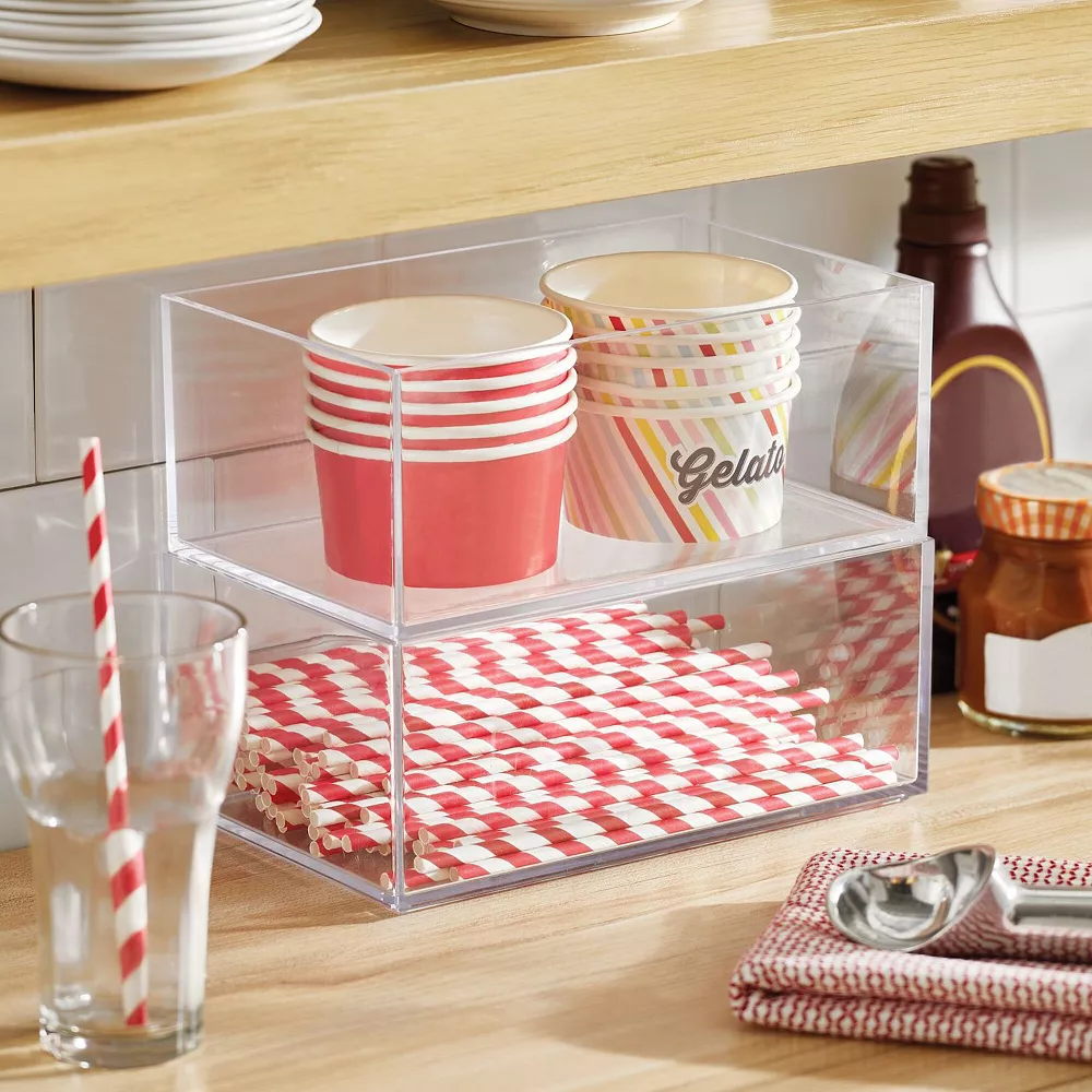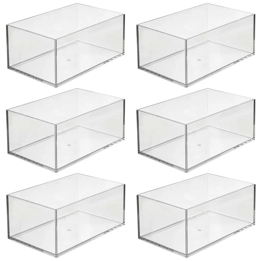 These Bathroom Storage Organizer Bins by mDesign make it simple and easy to sort and organize all of your health and beauty items. Open tops make it easy to see what is stashed inside and quickly grab what you need. The compact size is ideal for any room in the house. Mix and match with other mDesign bins to create a custom storage solution for your home. mDesign – Solutions for Home. Solutions for Life.