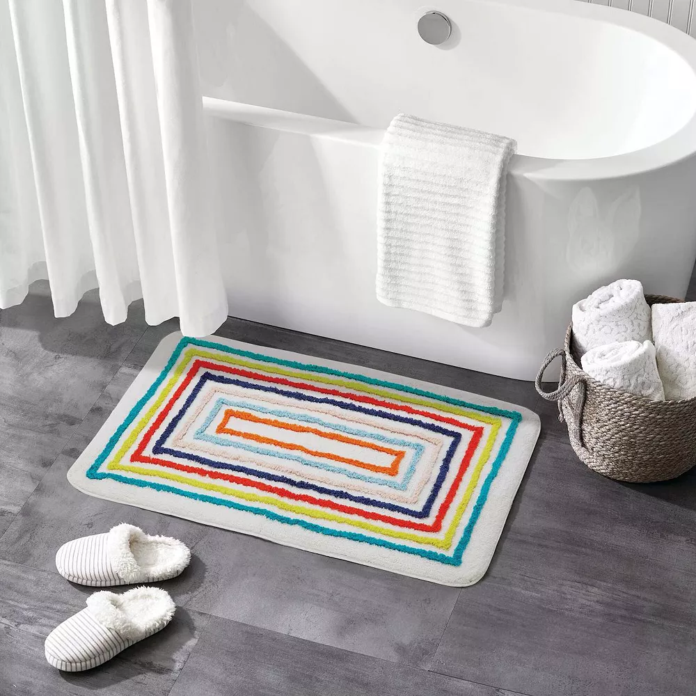 mDesign helps you add subtle style and a whole lot of comfort to your bathroom floors with these Fun Cotton Bathroom Rugs. Made of super-soft cotton, the rugs are highly absorbent, keeping your bathroom floors clean and dry. Place in front of the bathtub or shower, or in front of bathroom vanities and counters for a plush place to stand. The decorative message adds a touch of fun and levity to any decor, while adding plush comfort to bathroom floors. mDesign – Solutions for Home. Solutions for Life.