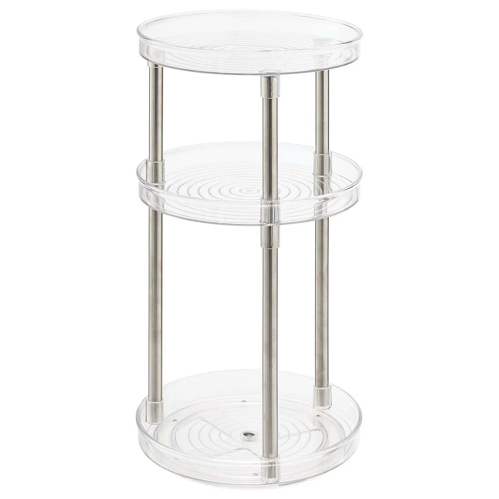 The 3-Tier Lazy Susan Spinning Makeup Organizer by mDesign makes it easy to store and organize all of your makeup, lipsticks, moisturizers, fragrances, colognes and other health and cosmetic supplies. The turntable spins on stainless-steel ball bearings to make grabbing what you need hassle-free every time. The raised outer edge on each tier keeps everything in place when the storage unit is in motion. This organizer is also perfect for storing health and medical essentials like pills, vitamins, supplement bottles, and other daily necessities. mDesign – Solutions for Home. Solutions for Life.