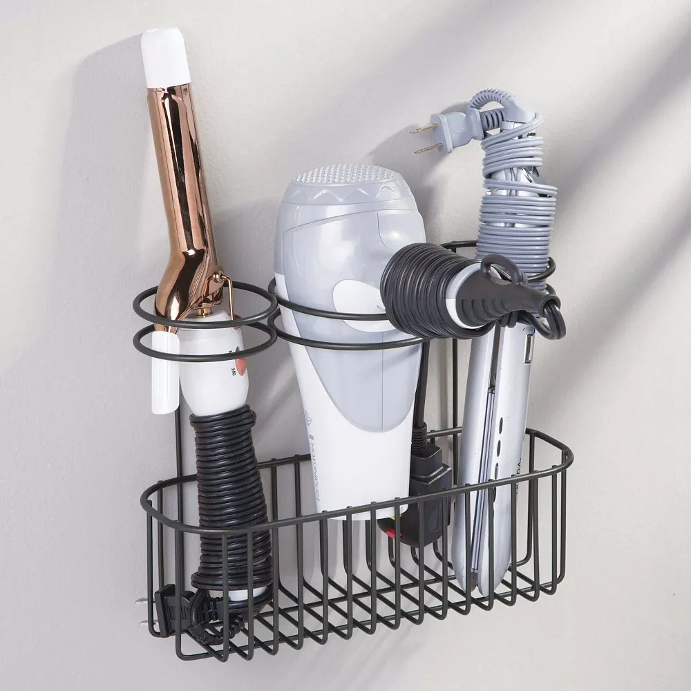 Sort and Organize hair styling tools and favorite products with this Wall Mounted Hair Care Organizer by mDesign. This caddy has three compartments hold all the tools you need for a great hair day, while the bottom ledge keeps items secure. This caddy organizer installs instantly by mounting to any blank wall space. The compact design lets you maximize your storage without cutting into already limited bathroom space. Use this caddy organizer for brushes, combs, all of your styling tools, and even your favorite products. mDesign – Solutions for Home. Solutions for Life.