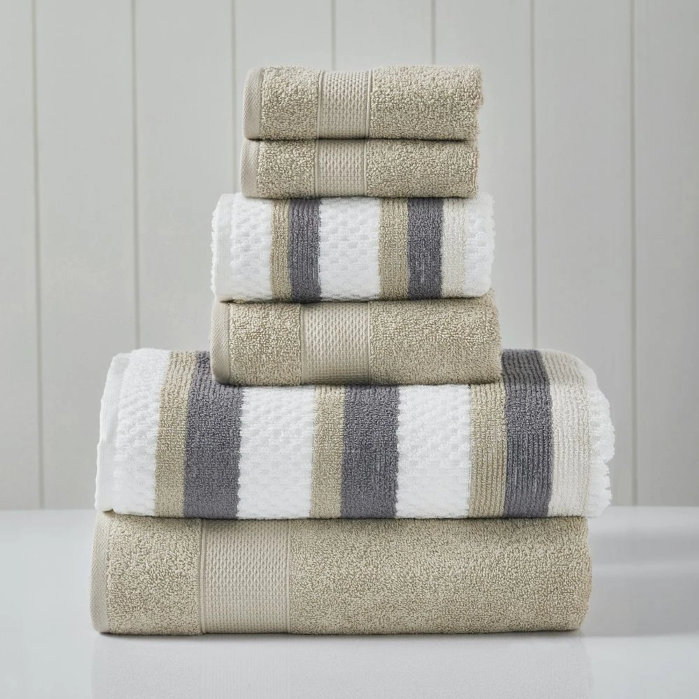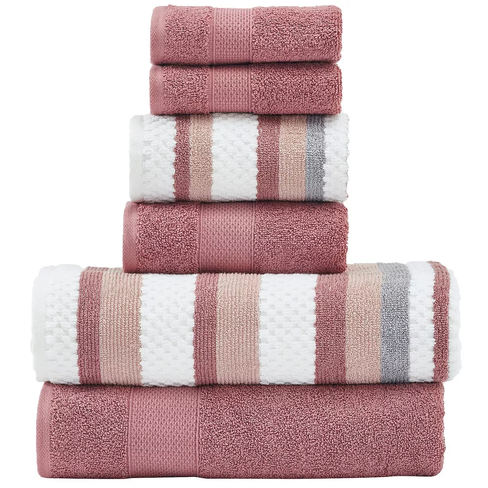 Add a luxurious look to your bathroom towel rack with this Modern Threads 6-Piece Pax Jacquard Towel Set.