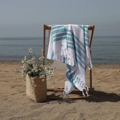 Linum Home Textiles Turkish Cotton Herringbone Cheerful Rainbow Heart Pestemal Beach Towel
