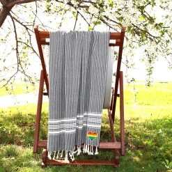 Linum Home Textiles Turkish Cotton Luxe Herringbone Cheerful Rainbow Heart Pestemal Beach Towel