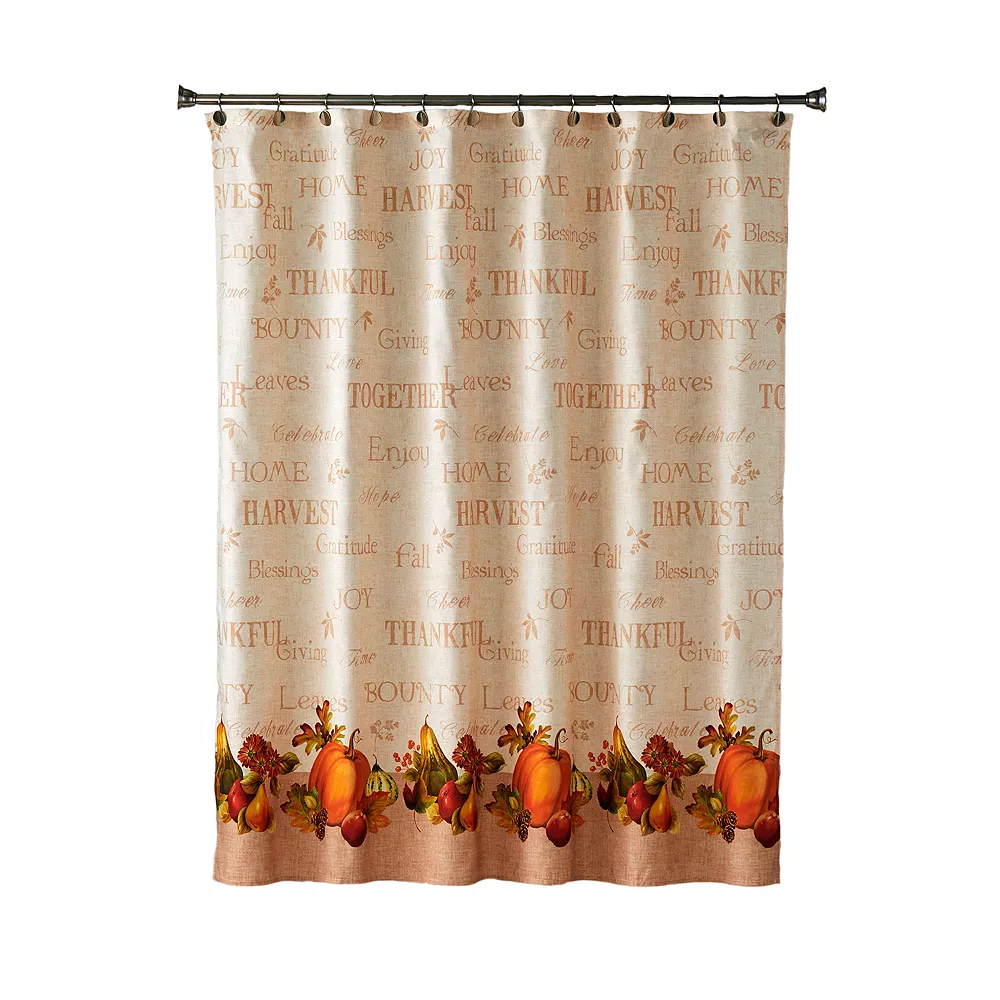 Find reasons to be thankful everyday with this Saturday Knight, Ltd. harvest bounty shower curtain.