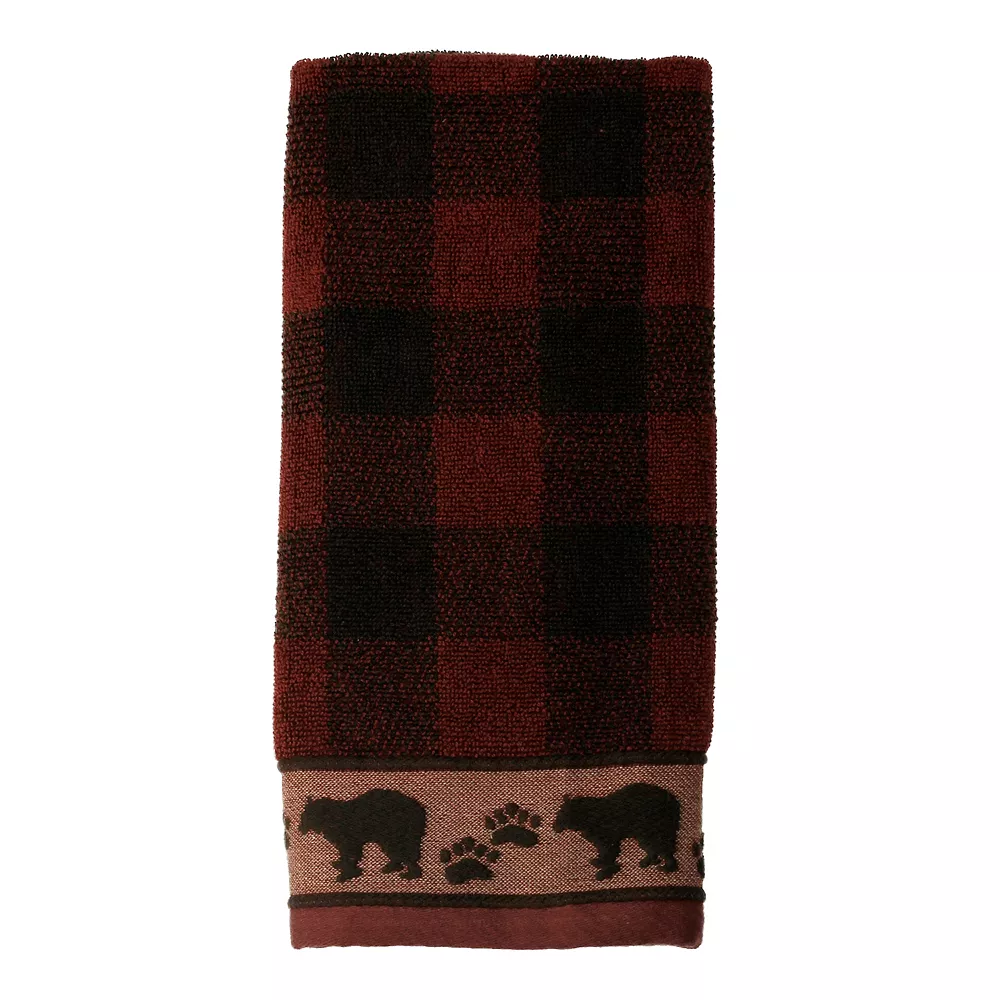 Bring in the winter warmth with this Saturday Knight, Ltd. Sundance hand towel. In red.