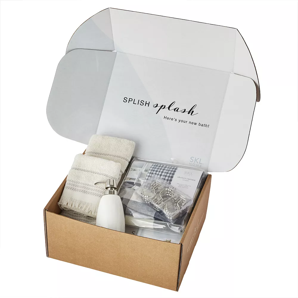 Elevate the look of your existing bathroom decor with this stylish splash box filled with bathroom accessories from SKL Home.