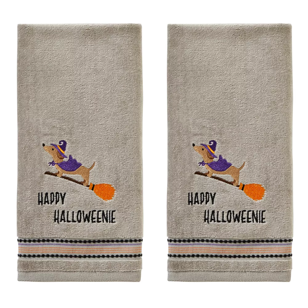 Easily elevate the look of your bathroom with this stylish SKL Home Happy Halloweenie 2-piece Hand Towel Set.