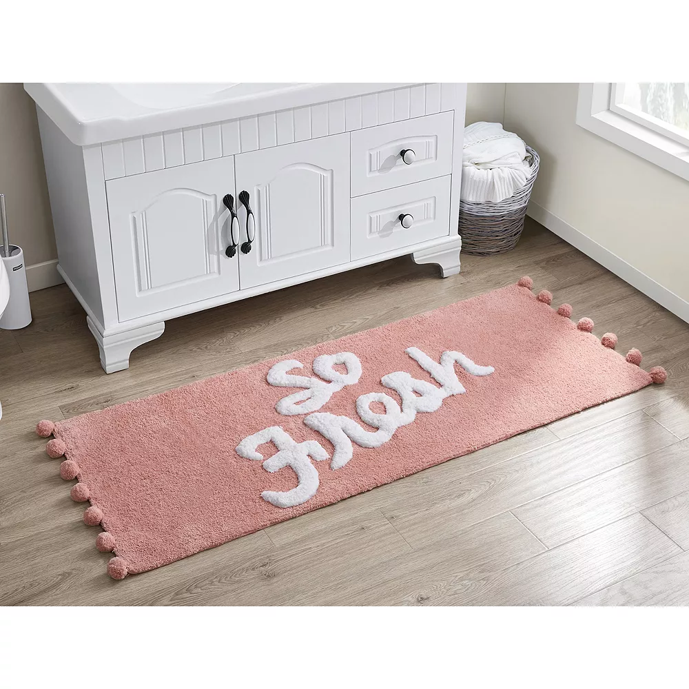 Freshen up your bathroom ambiance with this VCNY Home So Fresh Pom Pom Pink Bath Rug.