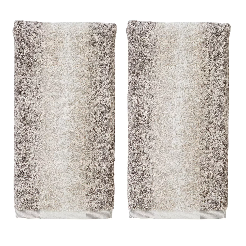 - Dispenser: 7.5″ x 2.75″ x 2.75″; Rug: 20″ x 30″; Hand Towels: 16″ x 26″