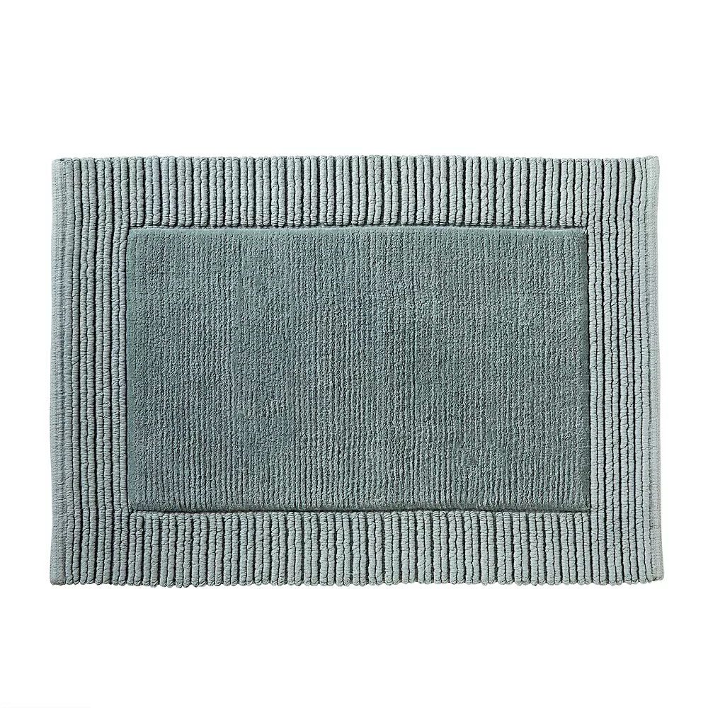 - This plush frame-loomed rug features a wider ribbed-like weave along the border. With a solid color and simplistic styling, this rug is versatile for use in bath, kitchen or any room you choose.