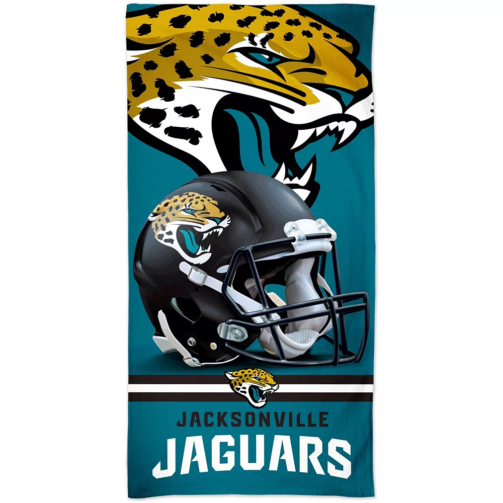 Lay by the pool or at the beach with this Jacksonville Jaguars Spectra beach towel. It features crisp Jacksonville Jaguars graphics that will serve as the foundation of your relaxation time. This 30 x 60 WinCraft towel will be the perfect addition to your summertime fun!